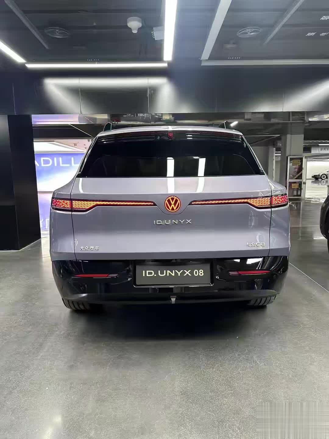 与众08的尾部显得十分自在,横向折线丰富了档次,车顶结尾留有扰流板和高位刹车灯,而狭长的晶耀点阵式尾灯与前灯组作念到了很好的呼应,而况金色尾标相通不错点亮,大面积的亮玄色后包围进一步增强清爽元素。
