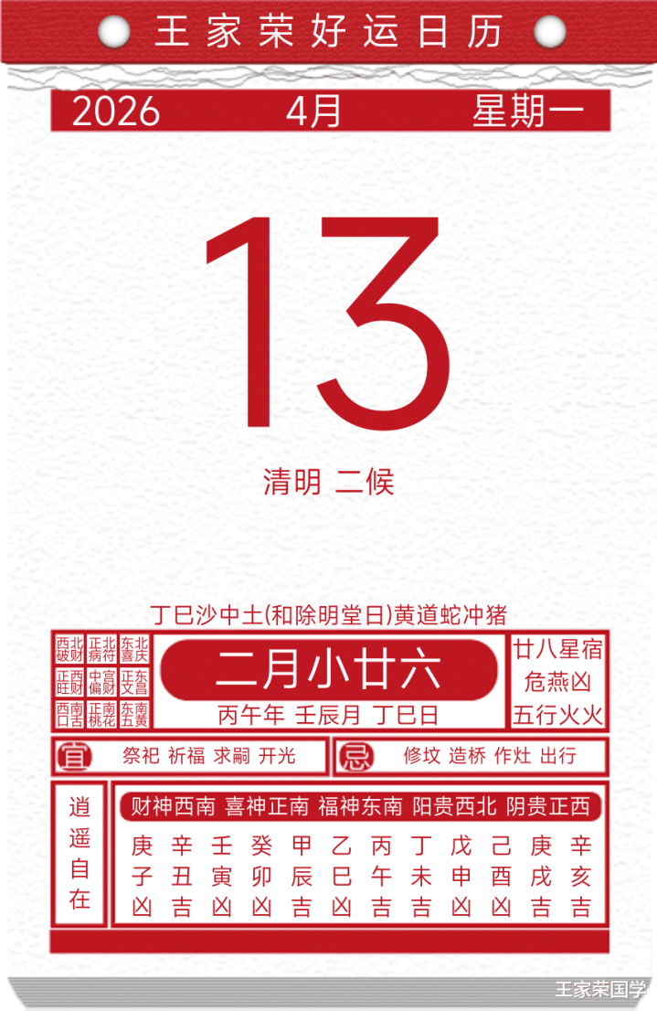 逐日通书福祸宜忌2026年4月13日