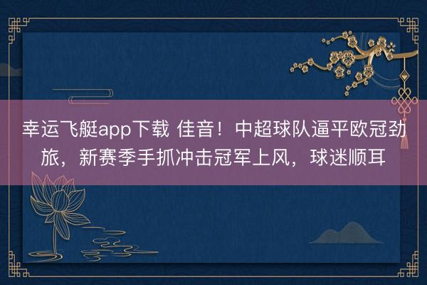 幸运飞艇app下载 佳音!中超球队逼平欧冠劲旅,新赛季手抓冲击冠军上风,球迷顺耳