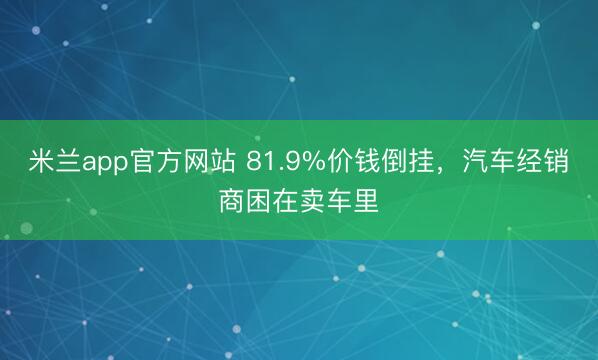 米兰app官方网站 81.9%价钱倒挂,汽车经销商困在卖车里