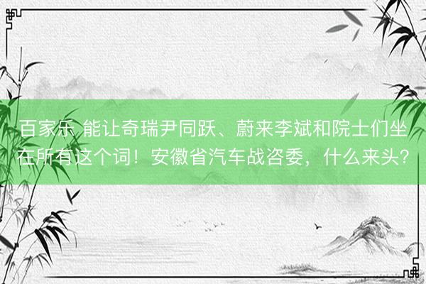 百家乐 能让奇瑞尹同跃、蔚来李斌和院士们坐在所有这个词!安徽省汽车战咨委,什么来头?