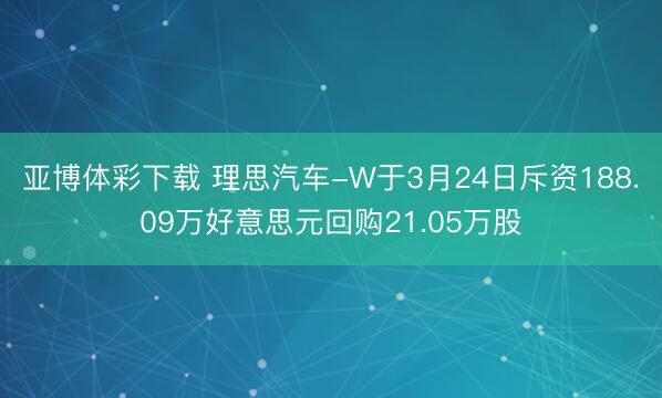 亚博体彩下载 理思汽车-W于3月24日斥资188.09万好意思元回购21.05万股