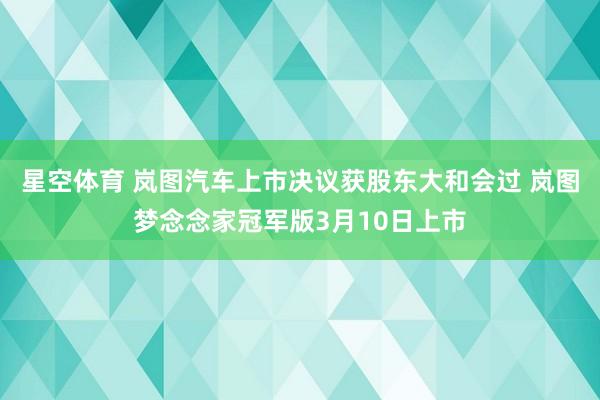 星空体育 岚图汽车上市决议获股东大和会过 岚图梦念念家冠军版3月10日上市