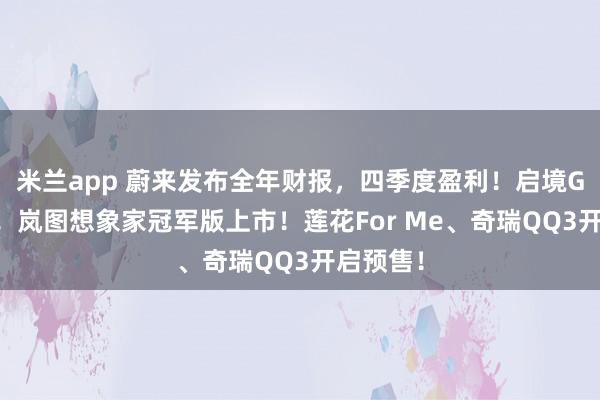 米兰app 蔚来发布全年财报,四季度盈利!启境GT7公布!岚图想象家冠军版上市!莲花For Me、奇瑞QQ3开启预售!