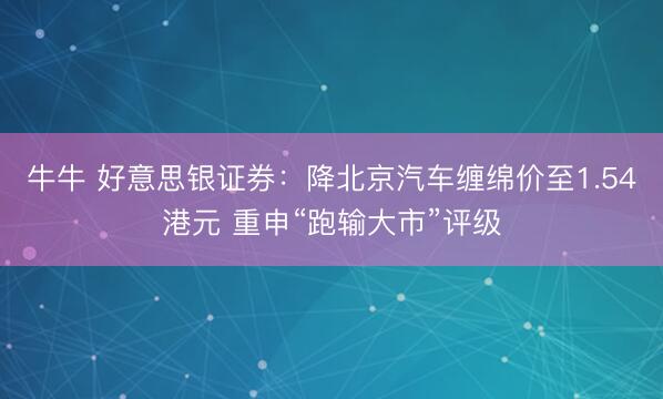 牛牛 好意思银证券:降北京汽车缠绵价至1.54港元 重申“跑输大市”评级