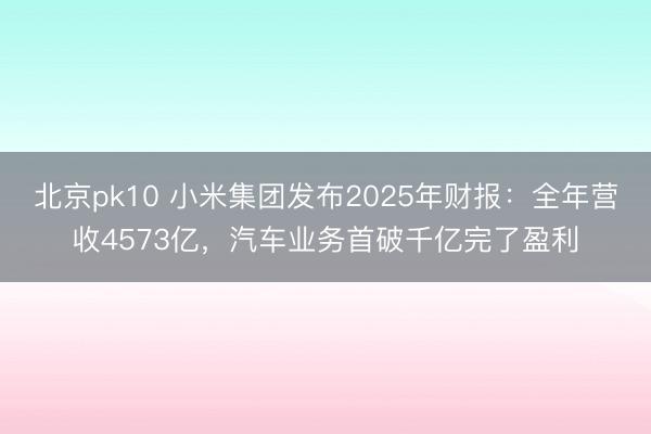北京pk10 小米集团发布2025年财报:全年营收4573亿,汽车业务首破千亿完了盈利