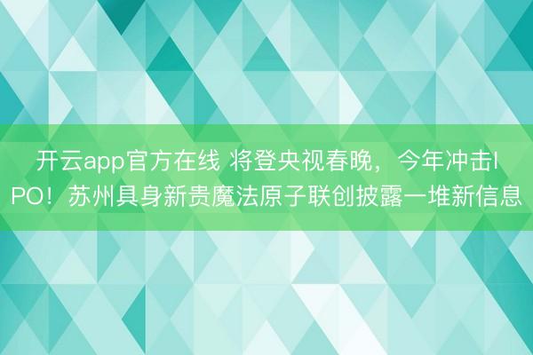开云app官方在线 将登央视春晚,今年冲击IPO!苏州具身新贵魔法原子联创披露一堆新信息