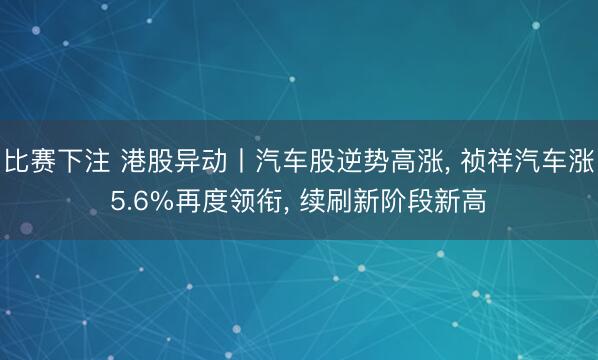 比赛下注 港股异动丨汽车股逆势高涨, 祯祥汽车涨5.6%再度领衔, 续刷新阶段新高