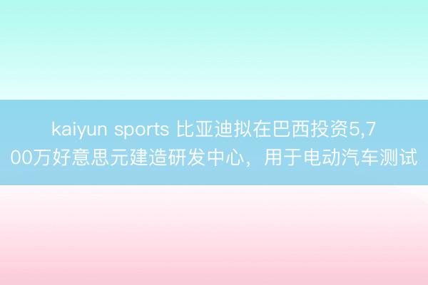 kaiyun sports 比亚迪拟在巴西投资5,700万好意思元建造研发中心,用于电动汽车测试