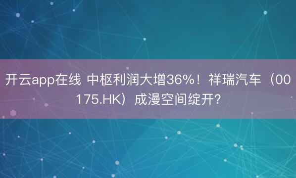 开云app在线 中枢利润大增36%!祥瑞汽车(00175.HK)成漫空间绽开?