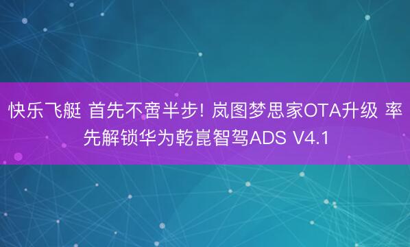 快乐飞艇 首先不啻半步! 岚图梦思家OTA升级 率先解锁华为乾崑智驾ADS V4.1