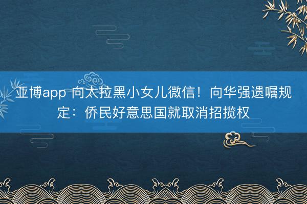 亚博app 向太拉黑小女儿微信!向华强遗嘱规定:侨民好意思国就取消招揽权