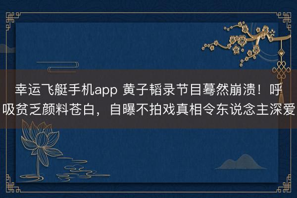 幸运飞艇手机app 黄子韬录节目蓦然崩溃!呼吸贫乏颜料苍白,自曝不拍戏真相令东说念主深爱
