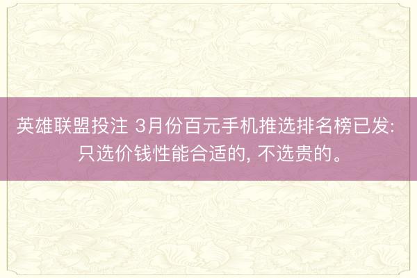 英雄联盟投注 3月份百元手机推选排名榜已发: 只选价钱性能合适的, 不选贵的。