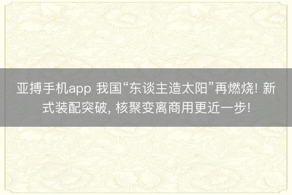 亚搏手机app 我国“东谈主造太阳”再燃烧! 新式装配突破, 核聚变离商用更近一步!