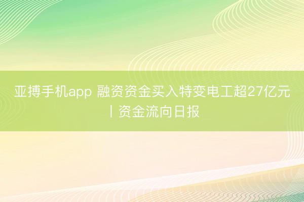 亚搏手机app 融资资金买入特变电工超27亿元丨资金流向日报