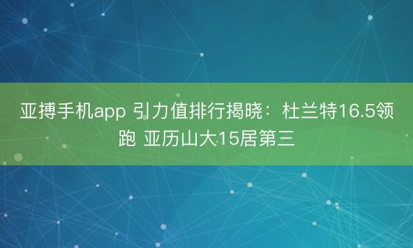 亚搏手机app 引力值排行揭晓:杜兰特16.5领跑 亚历山大15居第三