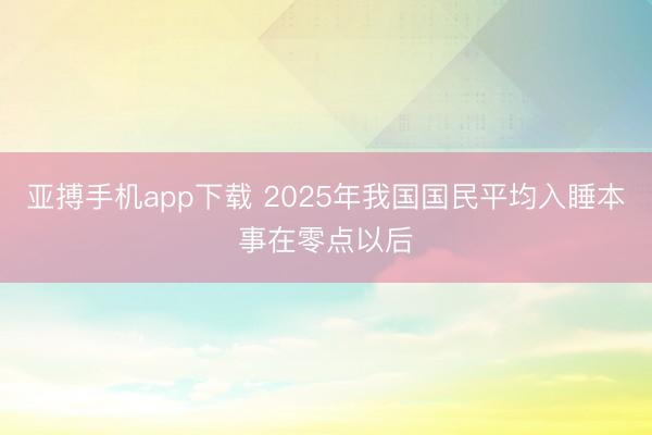 亚搏手机app下载 2025年我国国民平均入睡本事在零点以后