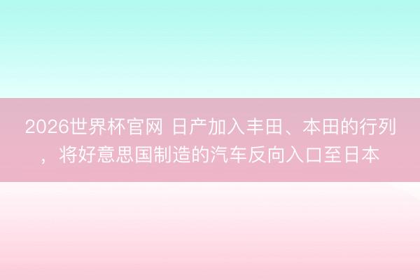 2026世界杯官网 日产加入丰田、本田的行列,将好意思国制造的汽车反向入口至日本