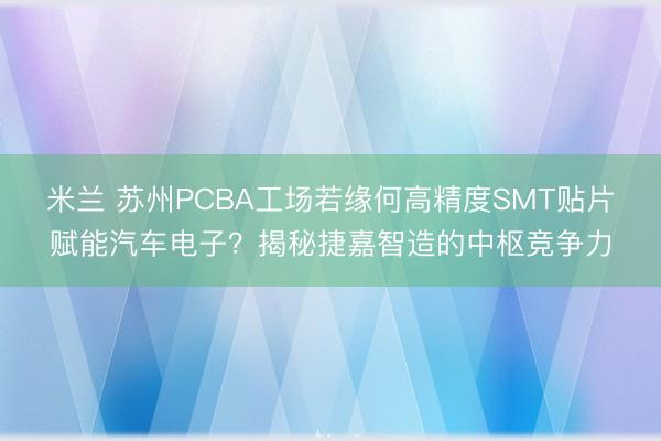 米兰 苏州PCBA工场若缘何高精度SMT贴片赋能汽车电子?揭秘捷嘉智造的中枢竞争力