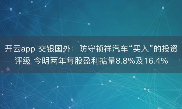 开云app 交银国外:防守祯祥汽车“买入”的投资评级 今明两年每股盈利掂量8.8%及16.4%