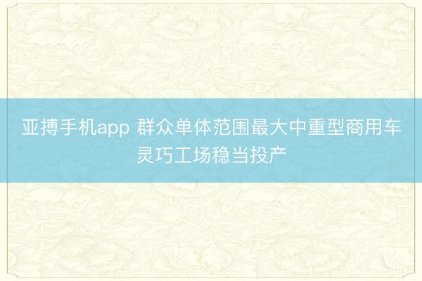 亚搏手机app 群众单体范围最大中重型商用车灵巧工场稳当投产