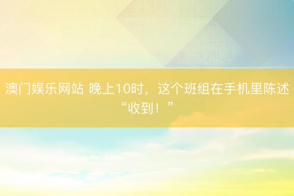 澳门娱乐网站 晚上10时,这个班组在手机里陈述“收到!”