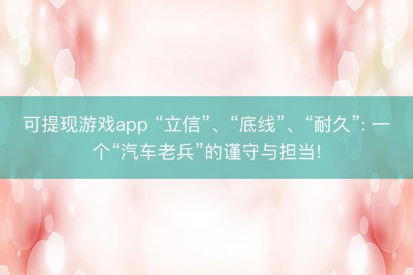 可提现游戏app “立信”、“底线”、“耐久”: 一个“汽车老兵”的谨守与担当!