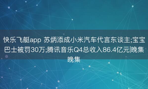 快乐飞艇app 苏炳添成小米汽车代言东谈主;宝宝巴士被罚30万;腾讯音乐Q4总收入86.4亿元|晚集
