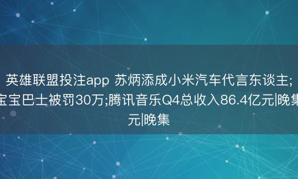 英雄联盟投注app 苏炳添成小米汽车代言东谈主;宝宝巴士被罚30万;腾讯音乐Q4总收入86.4亿元|晚集