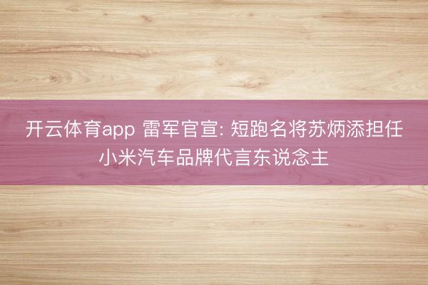 开云体育app 雷军官宣: 短跑名将苏炳添担任小米汽车品牌代言东说念主