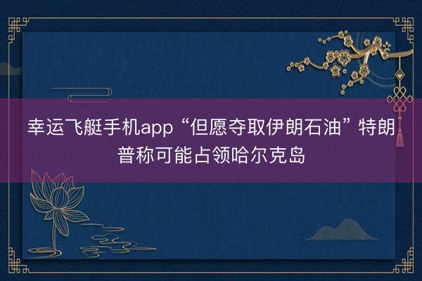 幸运飞艇手机app “但愿夺取伊朗石油” 特朗普称可能占领哈尔克岛