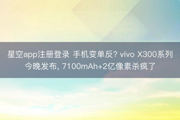 星空app注册登录 手机变单反? vivo X300系列今晚发布, 7100mAh+2亿像素杀疯了