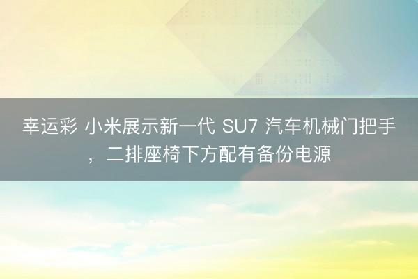 幸运彩 小米展示新一代 SU7 汽车机械门把手,二排座椅下方配有备份电源