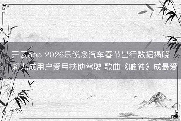 开云app 2026乐说念汽车春节出行数据揭晓:超九成用户爱用扶助驾驶 歌曲《唯独》成最爱
