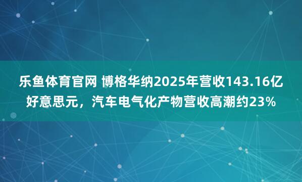 乐鱼体育官网 博格华纳2025年营收143.16亿好意思元,汽车电气化产物营收高潮约23%