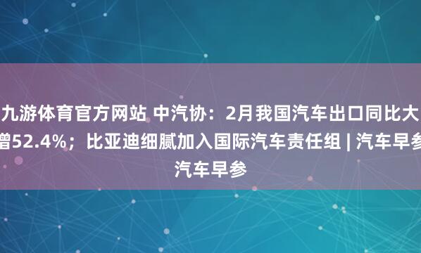 九游体育官方网站 中汽协:2月我国汽车出口同比大增52.4%;比亚迪细腻加入国际汽车责任组 | 汽车早参