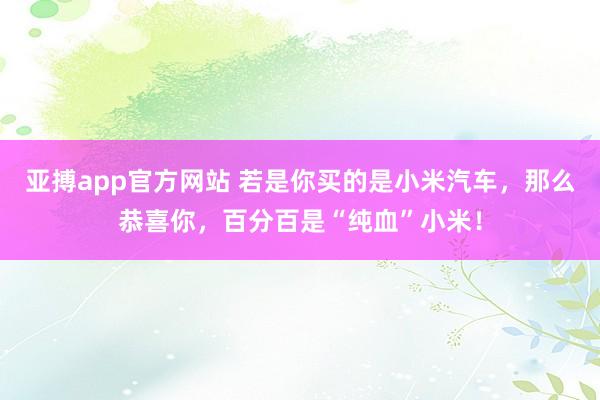 亚搏app官方网站 若是你买的是小米汽车,那么恭喜你,百分百是“纯血”小米!