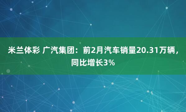 米兰体彩 广汽集团:前2月汽车销量20.31万辆,同比增长3%