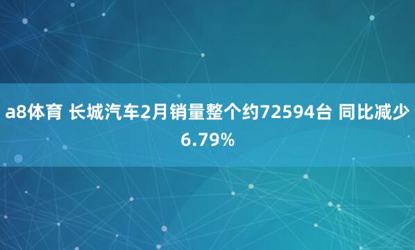 a8体育 长城汽车2月销量整个约72594台 同比减少6.79%