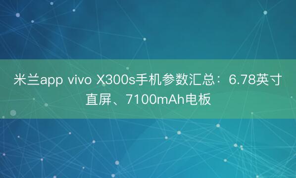 米兰app vivo X300s手机参数汇总:6.78英寸直屏、7100mAh电板