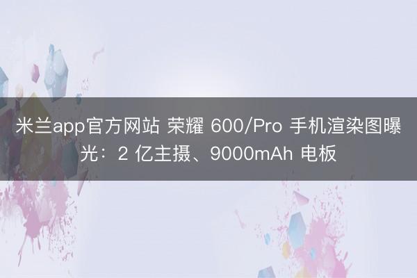 米兰app官方网站 荣耀 600/Pro 手机渲染图曝光:2 亿主摄、9000mAh 电板