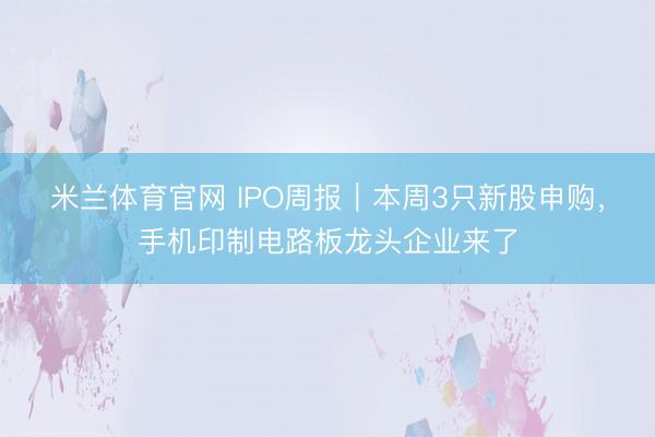米兰体育官网 IPO周报|本周3只新股申购,手机印制电路板龙头企业来了