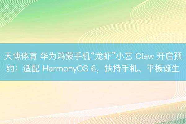 天博体育 华为鸿蒙手机“龙虾”小艺 Claw 开启预约:适配 HarmonyOS 6,扶持手机、平板诞生