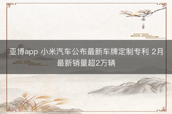 亚博app 小米汽车公布最新车牌定制专利 2月最新销量超2万辆