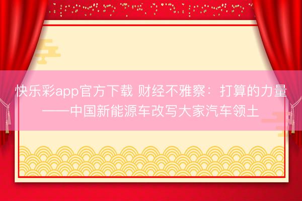 快乐彩app官方下载 财经不雅察:打算的力量——中国新能源车改写大家汽车领土