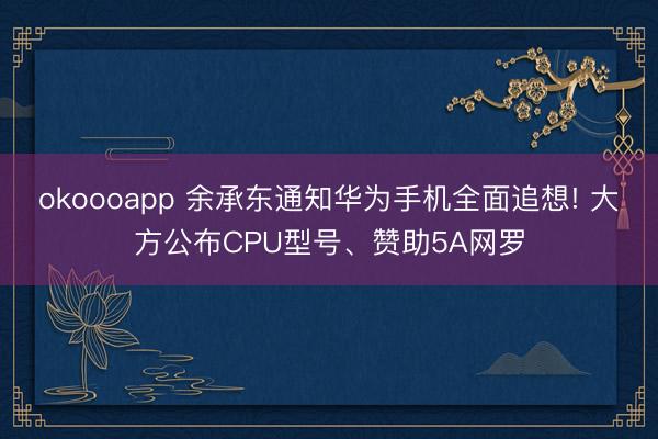 okoooapp 余承东通知华为手机全面追想! 大方公布CPU型号、赞助5A网罗