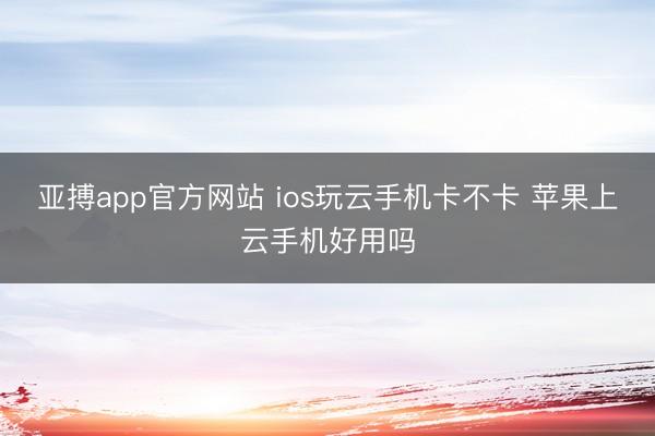亚搏app官方网站 ios玩云手机卡不卡 苹果上云手机好用吗