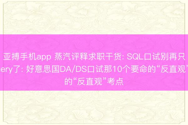 亚搏手机app 蒸汽评释求职干货: SQL口试别再只刷Query了: 好意思国DA/DS口试那10个要命的“反直观”考点