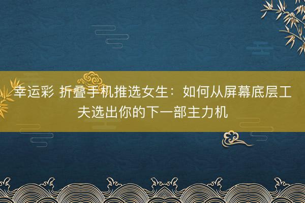 幸运彩 折叠手机推选女生:如何从屏幕底层工夫选出你的下一部主力机